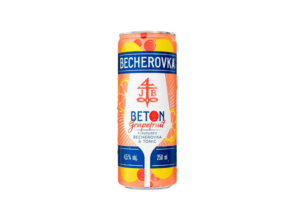 Becherovka Beton Grapefruit & Tonic je hotový koktejl, který přináší svěží spojení tradiční chuti s moderním twistem. Kombinace bylinného likéru Becherovka Original, grepové šťávy a toniku vytváří lehký a osvěžující drink ideální pro chvíle pohody i letní večery.