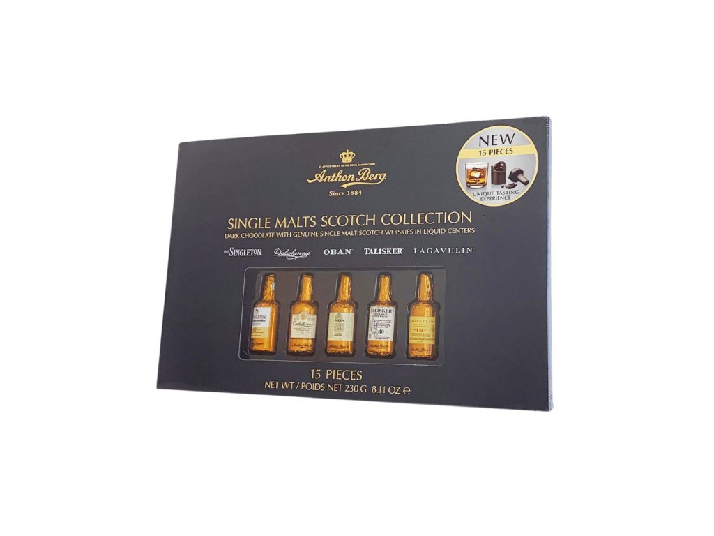 Z této jedinečné kolekce skotské whiskey budou mít všichni její milovníci opravdový a nezapomenutelný požitek! 15 mini láhví hořké čokolády naplněných kvalitní skotskou whiskey v luxusním balení.