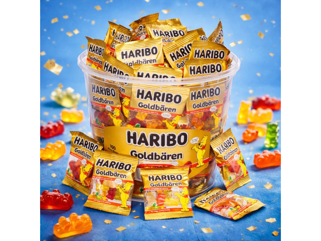 Gumoví medvídci Haribo jsou vyráběni z želatiny přírodního původu, takže nejenže výborně chutnají, ale také patří mezi nejzdravější želatinové bonbóny na trhu. Od svého vzniku v roce 1922 ušli dlouhou cestu a prošli řadou změn, přesto si však zachovávají své původní ovocné aroma, měkkost a šťavnatost, díky čemuž jsou oblíbené takřka po celém světě.
