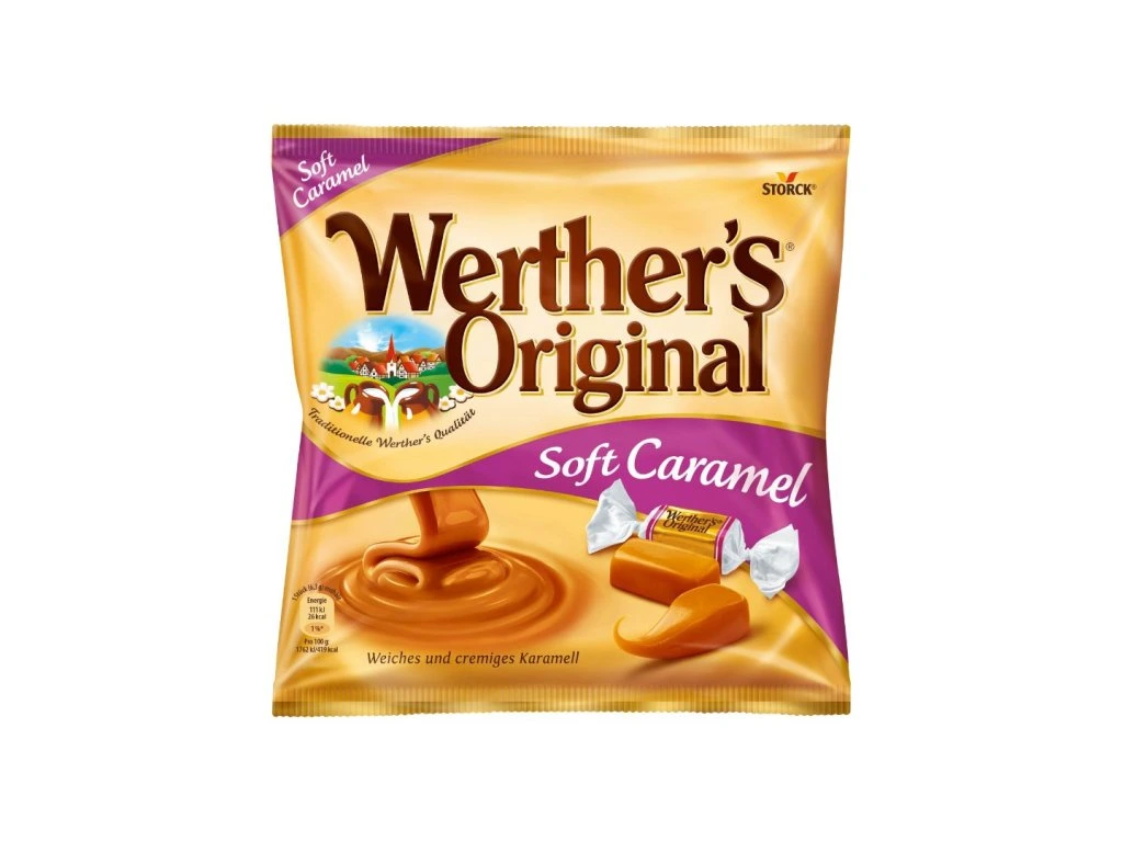 Storck Werther's Original Soft Caramel jsou měkké karamelové bonbóny známé svou bohatou, máslovou chutí a krémovou texturou.