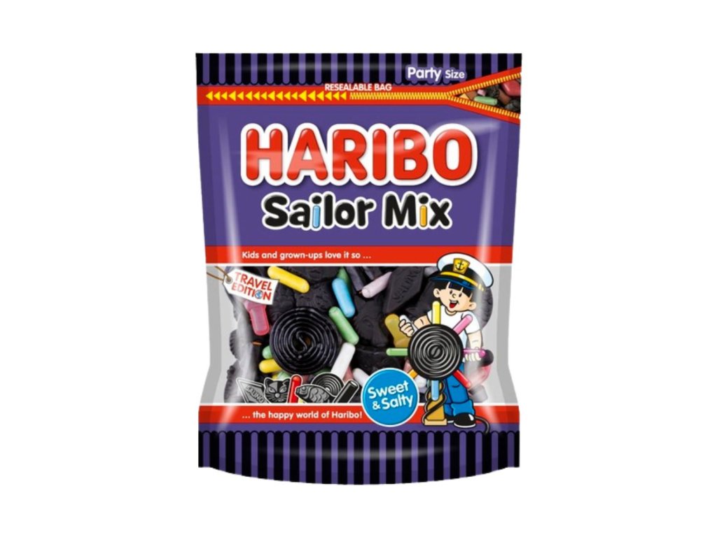 HARIBO Sailor Mix kombinuje rozmanité kořeněné lékořicové pochoutky: crazy sutter, Stafetten a lékořicoví šneci dělají z této rozmanité a barevné směsi neodolatelnou chuť pro milovníky lékořice.