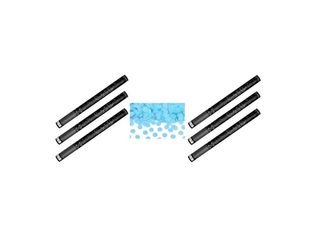 Konfety Narození kluka - Gender reveal - Baby shower 60 cm - Boy or girl ? Sada 6 ks konfet o délce 60 cm s modrými kolečky. Vystřelením konfet odhalíte rodině a svým známým pohlaví vašeho miminka. Konfety jsou zcela bezpečné a dají se použít v interiéru i exteriéru. Jejich variabilitu tedy oceníte jak při párty pořádané doma, tak i na Vaší zahradě nebo na jiných venkovních prostorech. Konfety jsou uloženy ve válcovité tubě. Drží se v ruce a ovládájí se mechanickým pootočením tubusu. Po vystřelení vyletí bílé okvětní lístky a rozptýlí se do okolí.| Iniciace: | stlačený vzduch |