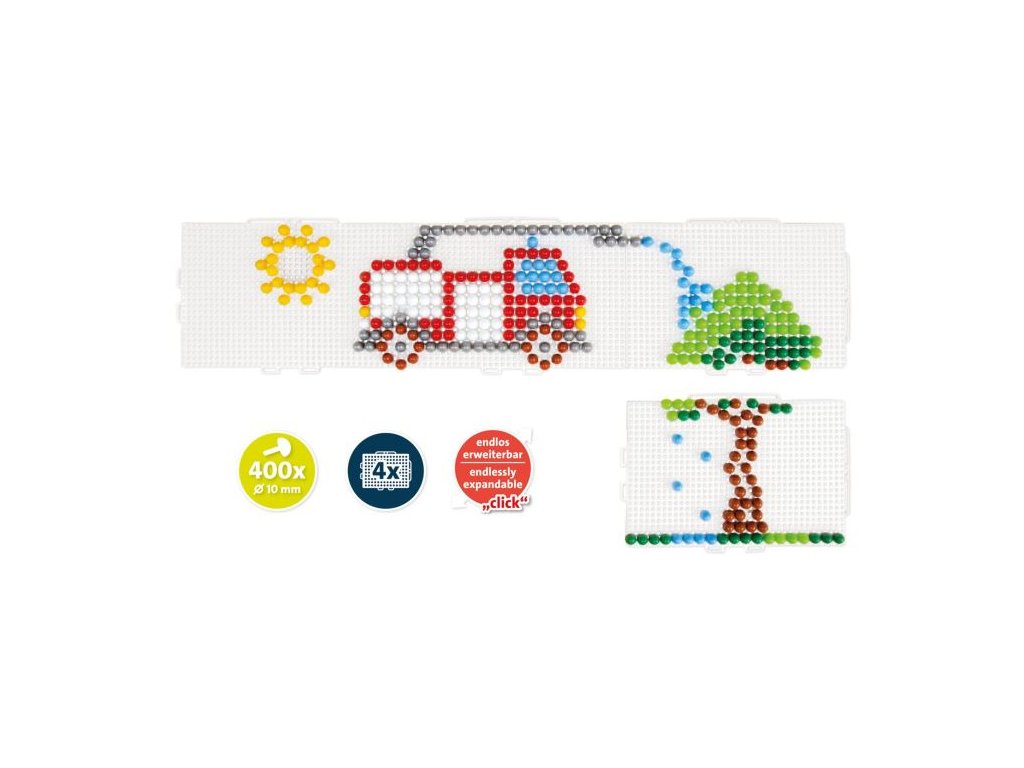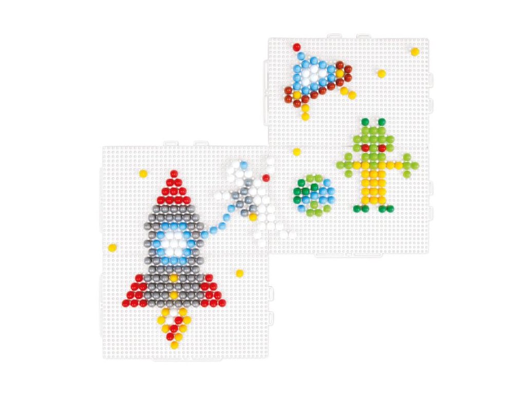 4 připojitelné mosaikové desky s 400ks průhlednými kolíky o velikosti 10mm vč. úložného vaku. Jedna děrovaná deska má velikost: 38,5 x 25,5 cm Doporučený věk: 3+Doplňkové parametry