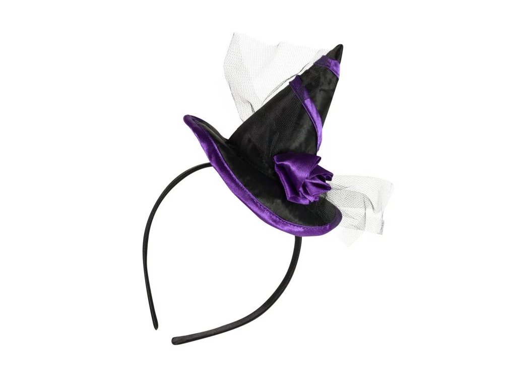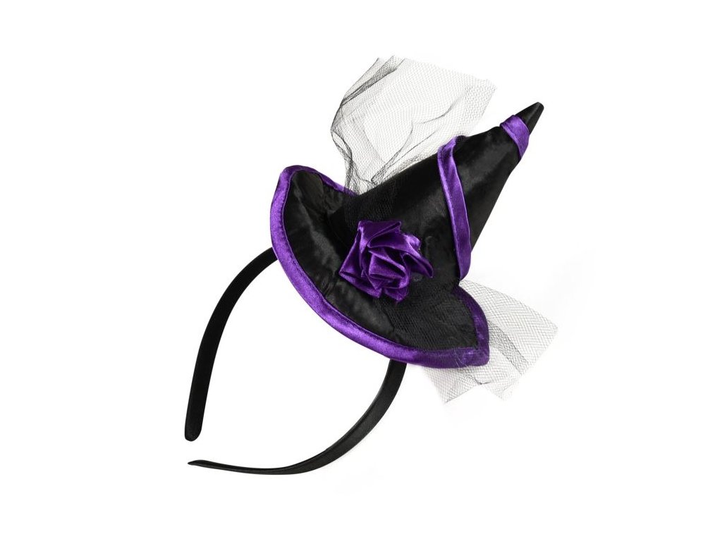 Stylová čelenka je perfektním doplňkem na večírek nebo Halloween párty! Černo-fialová čelenka je doplněna saténovým mini kloboučkem a tylovou ozdobou s květinou. Obsah balení: 1ksPodrobné informace o produktu získáte kliknutím .