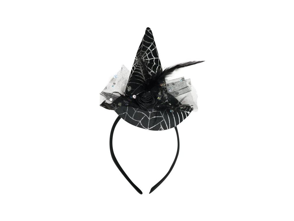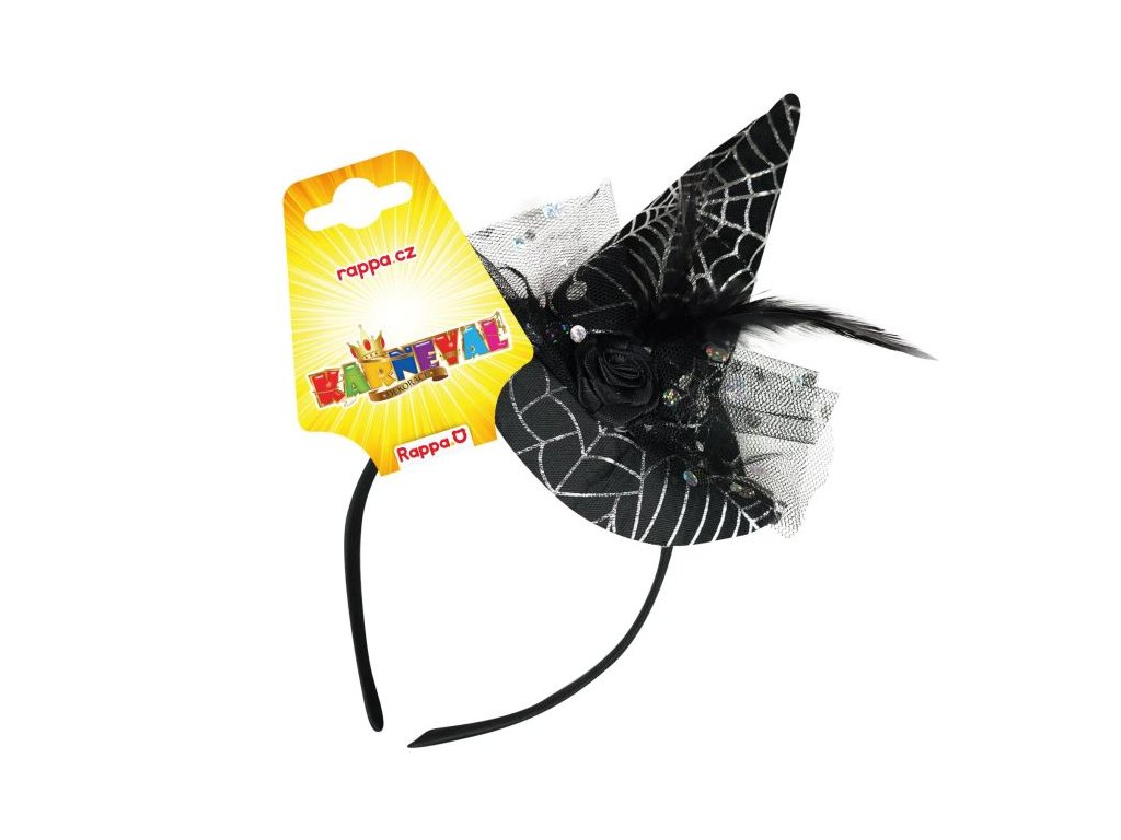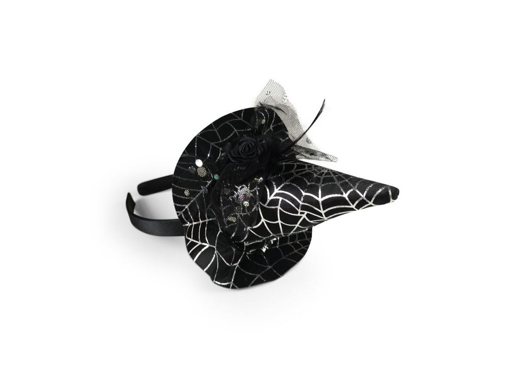 Čelenka s mini kloboučkem a pavučinou - čarodějnice - Halloween
