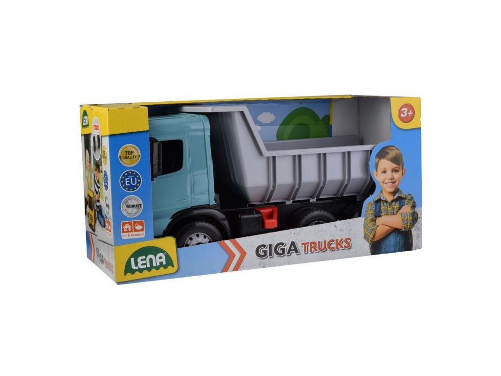 GIGA TRUCKS Sklápěč Arocs tyrkys Plastové auto s rozšířenou korbou na vození velkého a těžkého nákladu. Korbu je možno zajistit pojistkou proti nežádoucímu vyklopení. Baleno v okrasném kartónu.Doplňkové parametry
