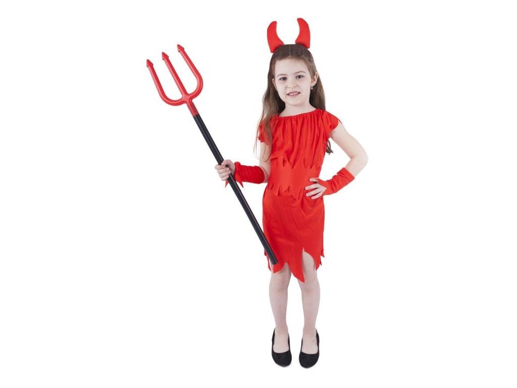 Pekelný karnevalový kostým s motivem čertice v zářivé červené barvě ve velikosti S je určen pro holčičky ve věkovém rozmezí 4-6 let (110-116 cm). Balení obsahuje šaty, čelenku s rohy, návleky na ruce a pásek.Podrobné informace o produktu získáte kliknutím .